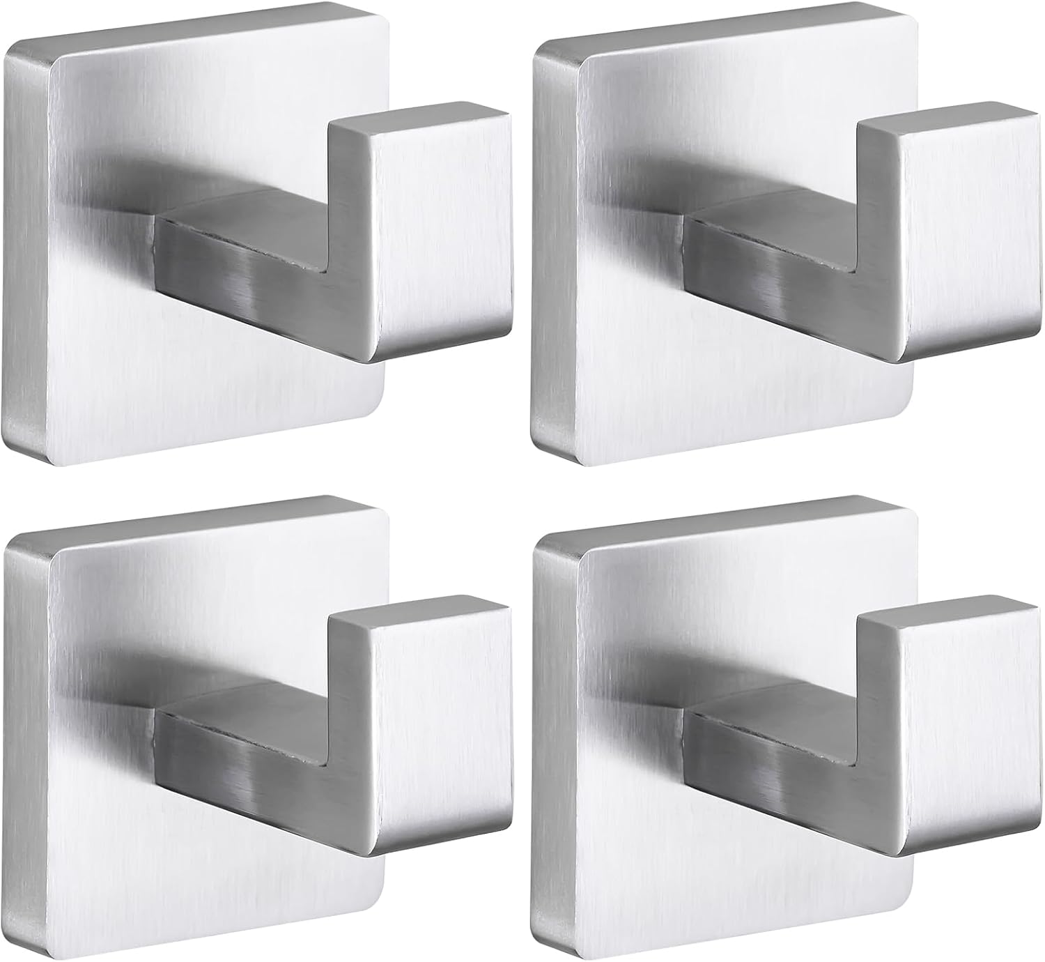 Towel Hooks for Bathrooms Robe Hook Coat Hook 4 Pack Brushed Nickel Stainless Steel Heavy Duty Wall Mounted Square Hooks for Bathroom Kitchen Bedroom