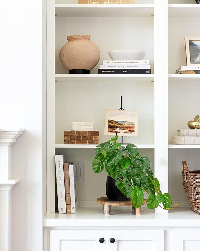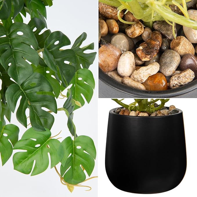 DILATATA Fake Plants Indoor 8 Inch Artificial Monstera Plant in Black Ceramic Pot - Faux Potted Tropical Palm Plant for Home Aesthetic Decor Living Room Shelf Office