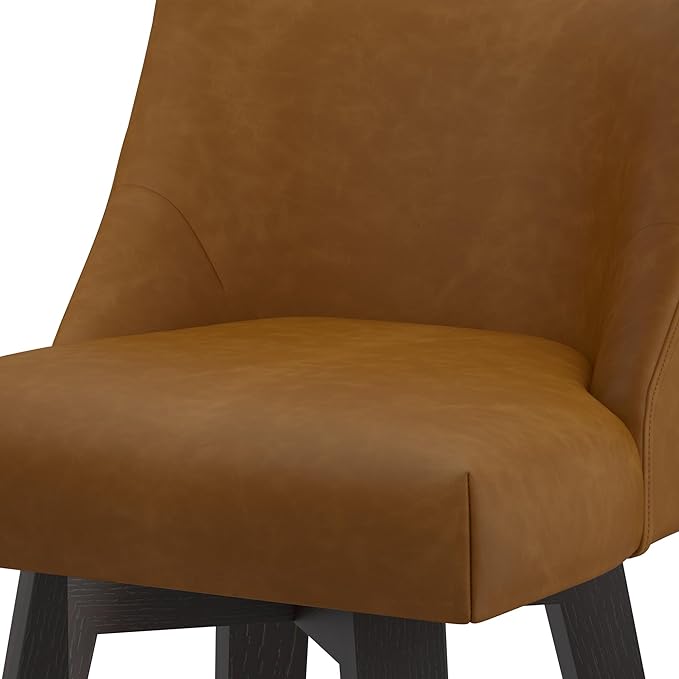 Bar Stools Set of 2, 26" H Counter Height Swivel Bar Stools, Upholstered Kitchen Island Counter Stools with Back and Solid Wood Legs, Faux Leather in Rustic Brown
