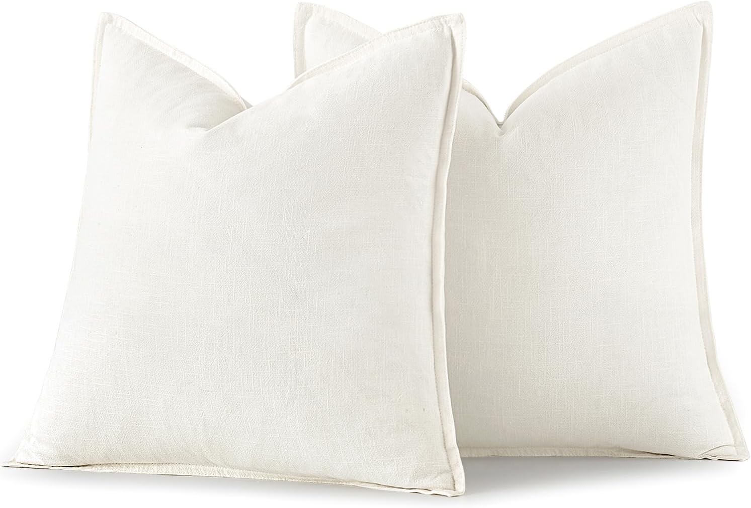 MIULEE Decorative Linen Euro Sham Pillow Covers 26x26 Cream White Boho Farmhouse Neutral Couch Throw Pillows Christmas for Bed Pack of 2 Accent Modern Pillowcase Sofa Livingroom Home Decor
