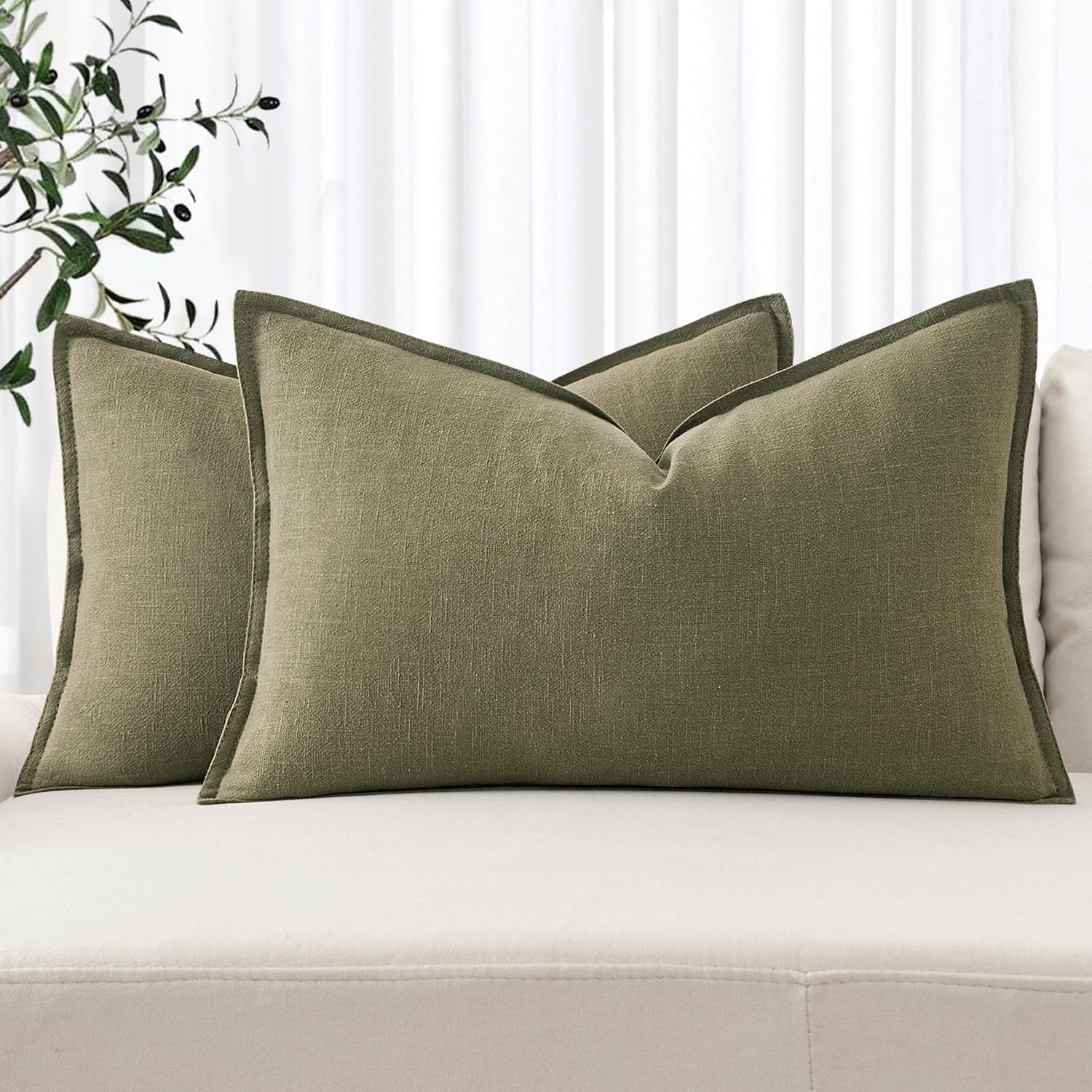 MIULEE Decorative Linen Lumbar Pillow Covers 12x20 Inch Light Olive Green Boho Farmhouse Neutral Couch Throw Pillows for Bed Pack of 2 Accent Modern Pillowcase Summer Sofa Livingroom Home Decor