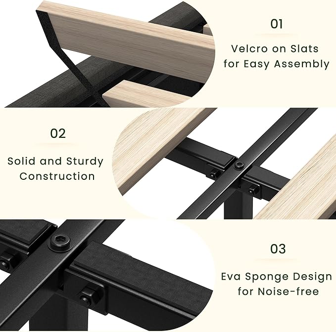 - 【Zero Noise, All Night Peace】 The queen upholstered platform bed frame with headboard equipped with Eva mute bar prevents noise from friction; You can have peace of mind knowing that your queen bed with storage will remain quiet and reliable for years to come