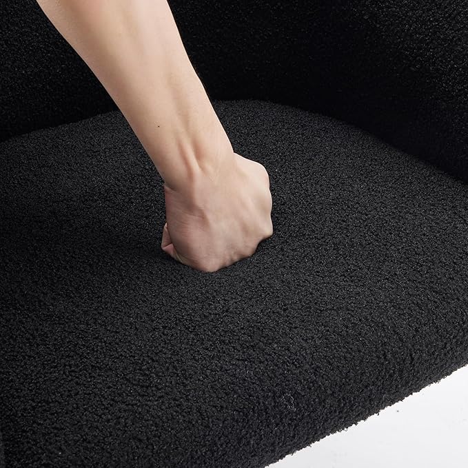 - Upholstered Sherpa Chair- Manufactured using soft teddy fabric and metal legs, It's available in either black or white and the seat cushion features extra padding for additional comfort. Upholstered in durable textured polyester. Legs end with plastic foot pads.
