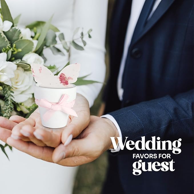 - Set of 6: Includes 6 pink butterfly seed paper, 6-mini pots with pink bows. Each butterfly is 2.85" x 2.5", pot is 1.5" x 2.5", ideal for pots, gardens, or outdoor spaces.