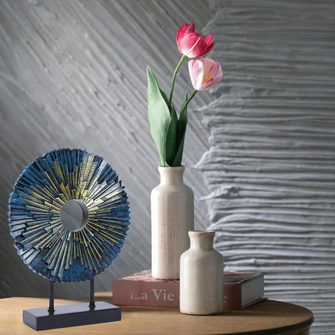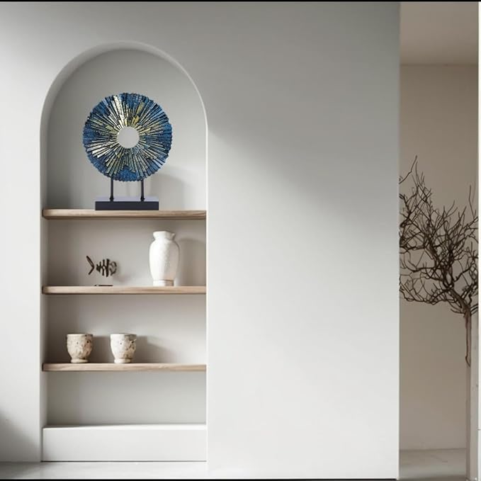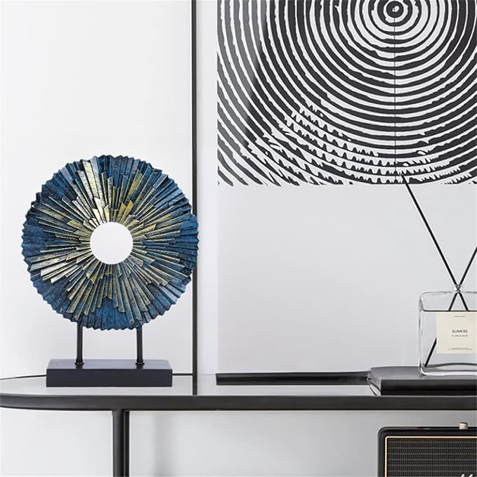 HODESumPure Gold Luxury Round Decorative Sculpture Statue Above Cabinet Home Decorations for Living Room Kitchen Fireplace Mantel Office Bookshelf Table Top Home Decor Accents (Blue)