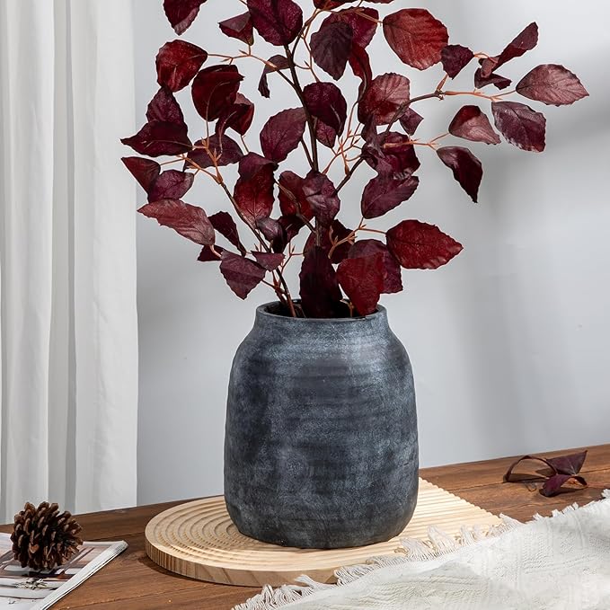 Briful 8.3in Rustic Large Ceramic Vase, Vintage Farmhouse Terra Cotta Pottery Pampas Vases for Home Living Room Kitchen Decor, LightSlateGray