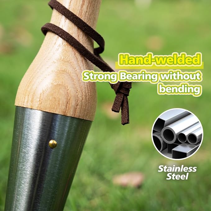 - Ergonomic Wood Handle: The hand dibber features beautiful ash wood T grip handle, providing a comfortable grip for repeated use. This ergonomic design helps reduce hand fatigue during extended gardening sessions. Leather wrist strap for carrying and hanging up after use.