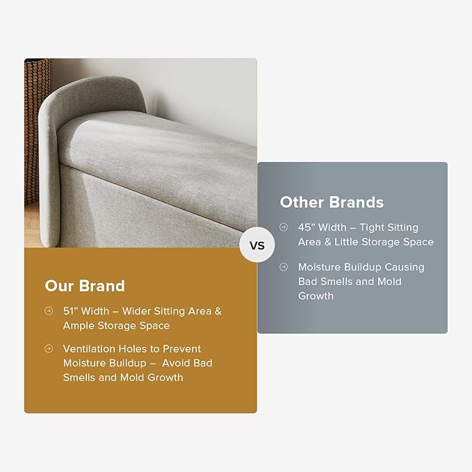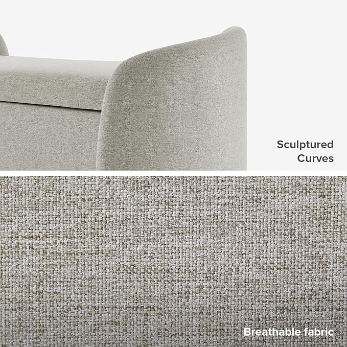 mopio Sophie 51" Ottoman Storage Bench, Entryway and Window Seating, End of Bed Curved Stool for King & Queen Bed, Storage Chest for Bedroom (Light Gray Fabric)
