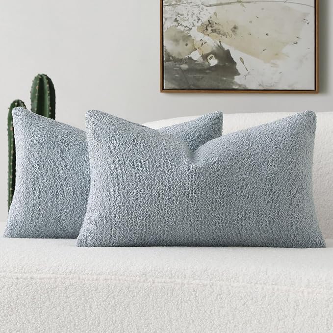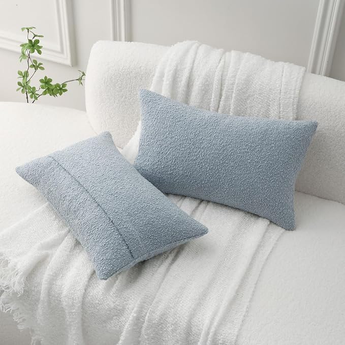 FUTEI Pack of 2 Dusty Blue Decorative Throw Pillow Covers 12x20 Inch Soft Cozy Solid Boucle Textured Lumbar Pillow Cases,Modern Home Decor for Couch Bed Living Room