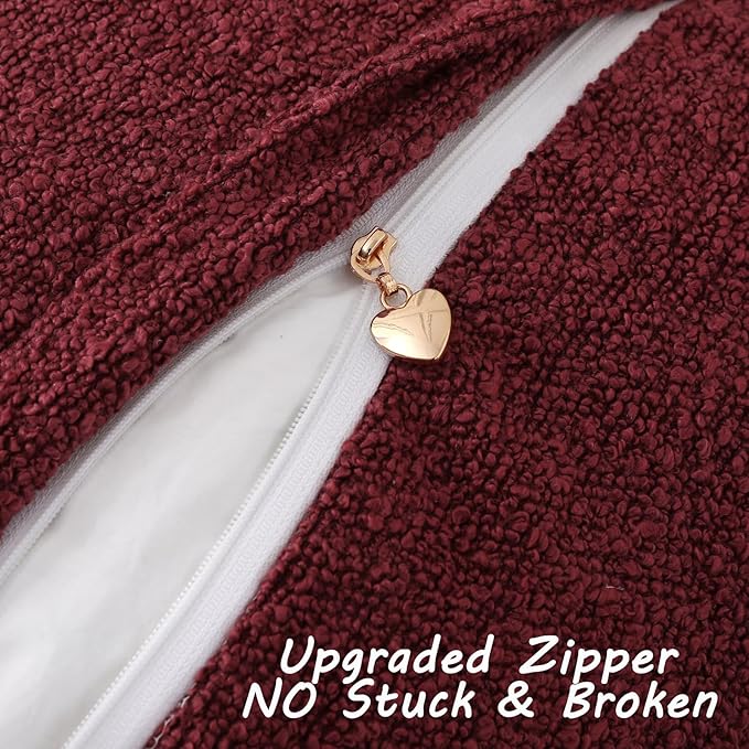 FUTEI Pack of 2 Burgundy Decorative Throw Pillow Covers 12x20 Inch Soft Cozy Solid Boucle Textured Lumbar Pillow Cases,Modern Home Decor for Couch Bed Living Room