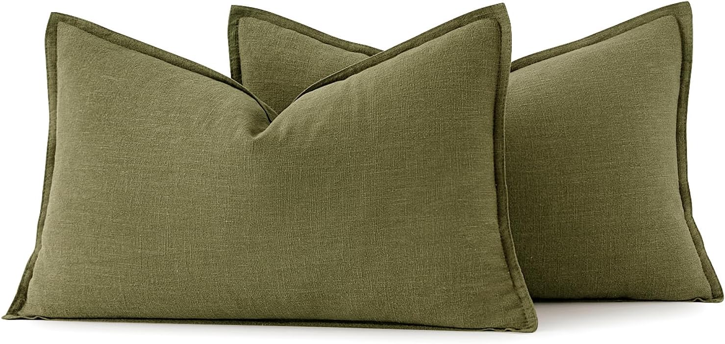 MIULEE Decorative Linen Pillow Covers 12x20 Inch Green Boho Farmhouse Neutral Couch Throw Pillows for Bed Pack of 2 Accent Outdoor Pillowcase Modern Sofa Cushion Livingroom Home Decor