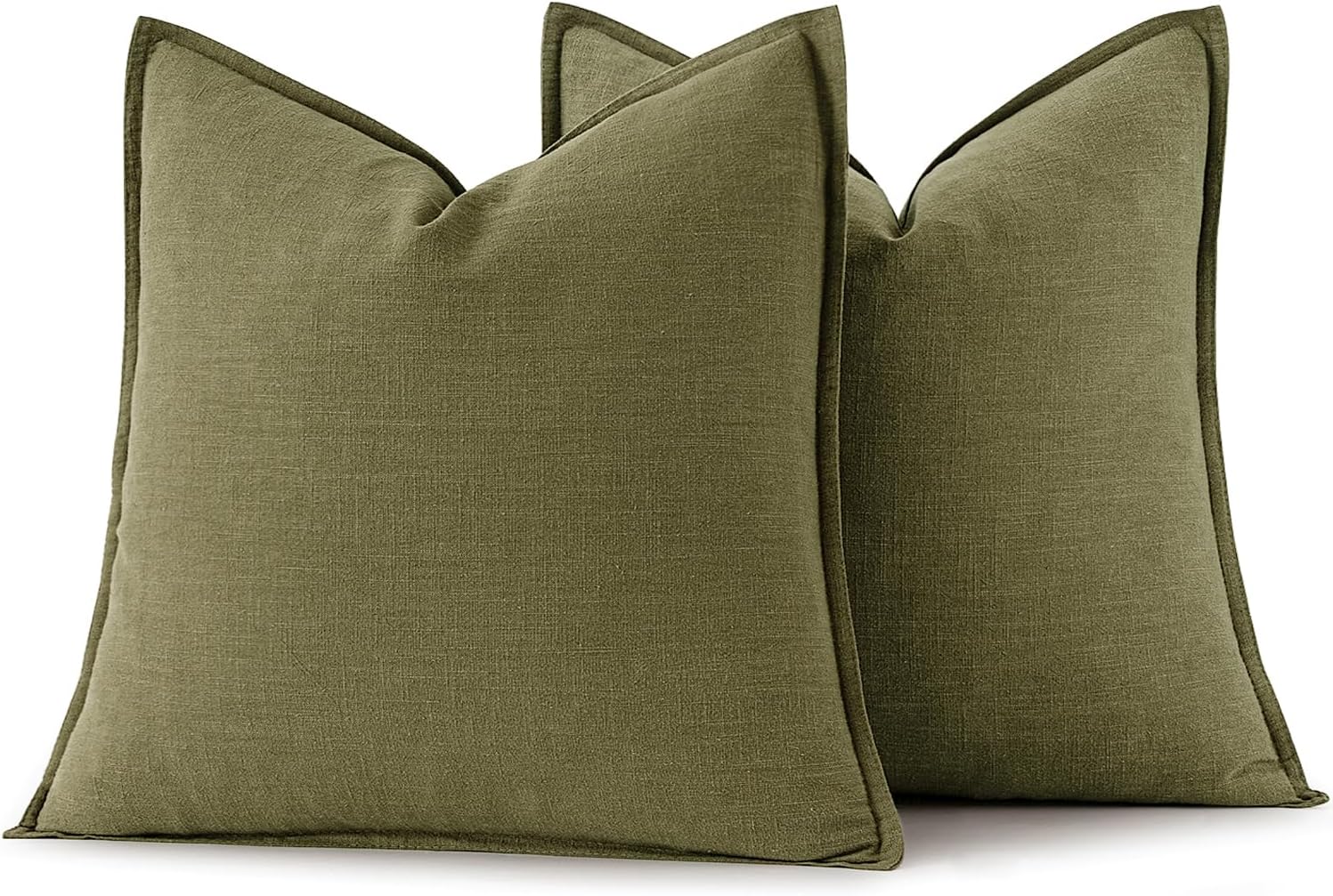 MIULEE Decorative Linen Pillow Covers 20x20 Inch Green Boho Farmhouse Neutral Couch Throw Pillows for Bed Pack of 2 Accent Outdoor Pillowcase Modern Sofa Cushion Livingroom Home Decor