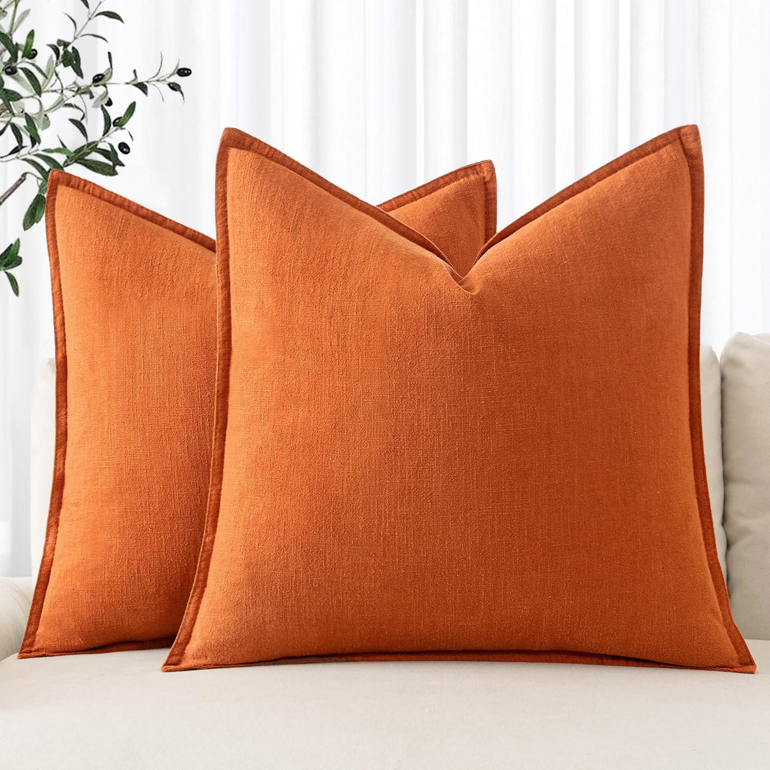 MIULEE Fall Decorative Linen Pillow Covers 18x18 Inch Orange Boho Farmhouse Neutral Couch Throw Pillows for Bed Pack of 2 Accent Modern Pillowcase Summer Sofa Livingroom Home Decor