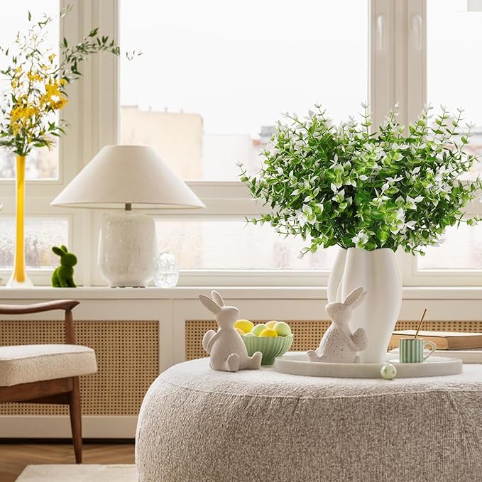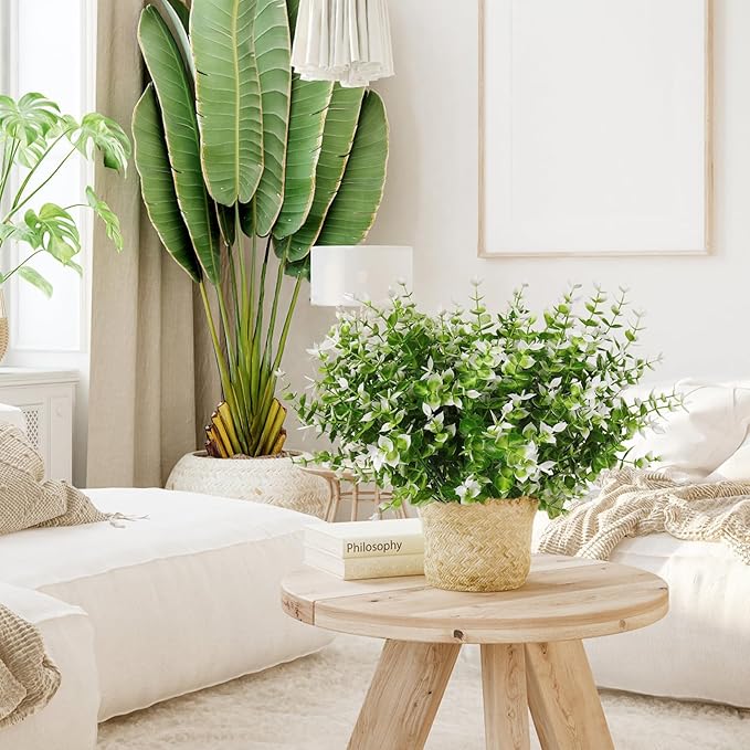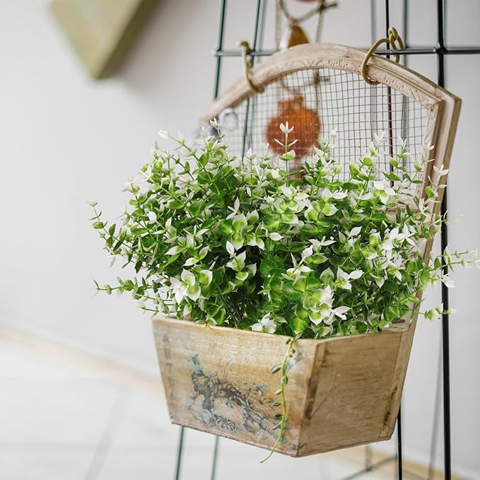 - 【8 Bundles Artificial Fake Flowers】- You will get 8 Bundles artificial flowers, these flowers are handmade to offer a more unique look in every bundle. Each plastic flowers has 7 flexible stems and bushy eucalyptus leaves. The artificial outdoors flowers' height is 13.8".