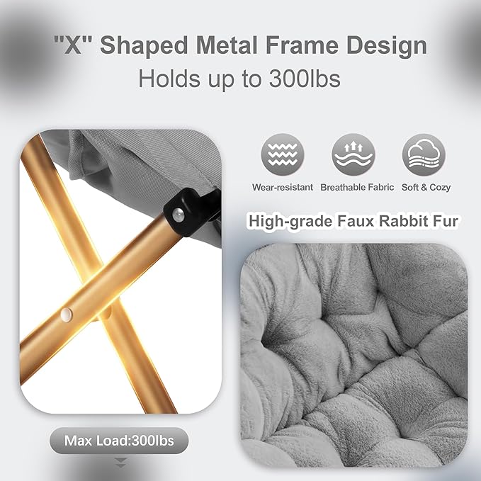 Comfy Saucer Chair, Foldable Living Room Chairs, Soft Faux Fur Lounge Chair for Bedroom, Reading Chairs for Adults, Kids, X-Large (Blue Grey)