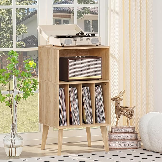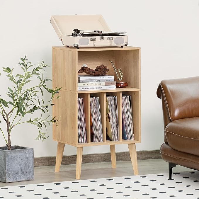 - 【Suitable for Multiple Scenarios】The Burlywood texture of the vinyl player stand highlights a calm and retro atmosphere. A retro appearance combined with modern functions, perfectly integrated into various styles of home decor. You can place it in the living room, bedroom, music room, or office to let music flow through your life. The record player shelf can also serve as a bedside table, bookshelf or even a file cabinet. More usage possibilities are waiting for you to unlock.