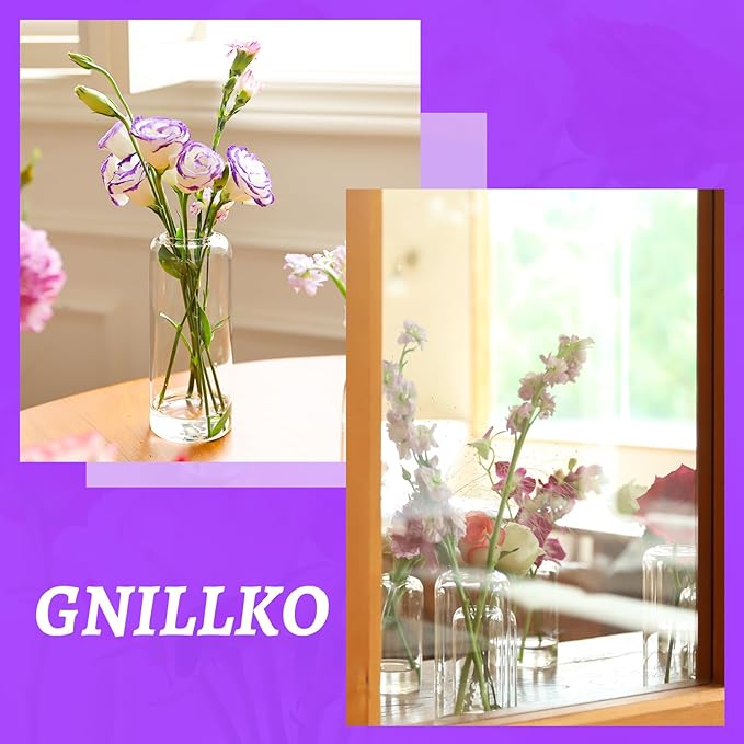 - 🌸Quality & Safety: Clear glass bud vases is made of selected premium thick borosilicate glass,hand-blown to a bright and high transparent finish with durable and sturdy. The top of the vase is smooth with no sharp edges, ensuring safety during the flower arrangement process. Note: Remember to add an appropriate amount of water according to the quantity and weight of the flowers for stability.