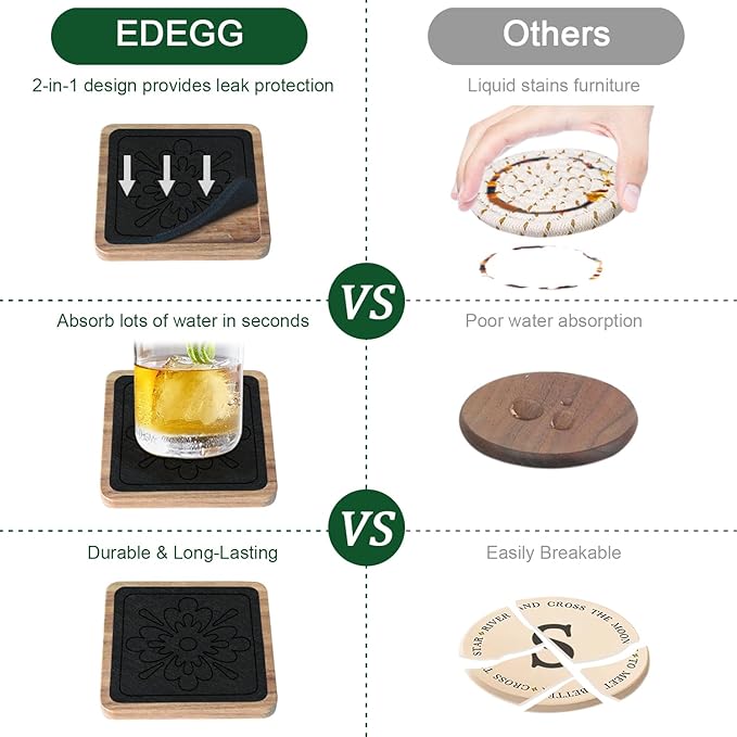 - 🍻Non-slip & Non-stick cups: Wooden coaster with 4 soft anti-slip pads on the bottom, which protect the surface of your furniture from scratches or damage, and prevent sliding all around; high-quality felt has good absorption that doesn't stick on the glass when you pick up the drink, prevents falling and noise, suitable for cold or hot drinks.