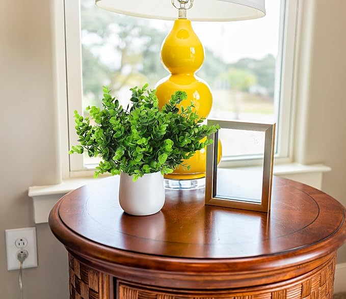 - 🍃【8 Bundles Artificial Boxwood Bushes 】- You will get 8 bundles artificial plants boxwood shrubs, each of which is about 13 inches /36 cm long, and you can use these artificial eucalyptus stems alone or DIY them into a dense fake bushes.