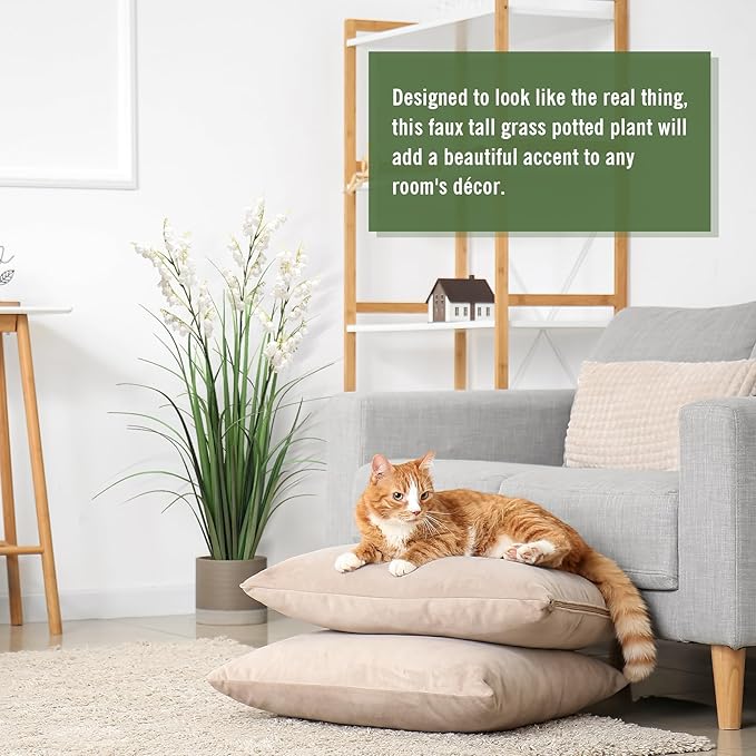 - Realistic Design: Boasting exquisite craftsmanship, this artificial plant shines with remarkable realism. The combination of PVC leaves and silk petals results in a texture so authentic, it’s nearly identical to live foliage. As an artificial grass plant, its leaves sway softly in the wind, introducing a lively, dynamic element. These faux plants infuse any space with an genuine, natural feel.