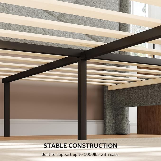 - Rock-Solid Stability: Crafted with a heavy-duty metal frame and 12 solid wood slats, it supports up to 1000 lbs with 8 reinforced points for ultra-sturdy sleep
