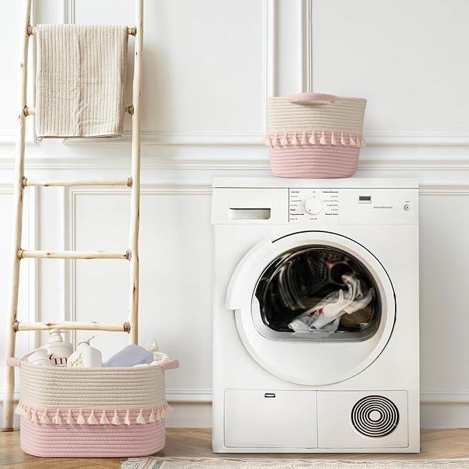 TeoKJ Storage Baskets 3 Packs, Storage Basket for toys,Towel, Storage Bins, Woven Basket for Shelves Bedroom Laundry Nursery, White & Pink