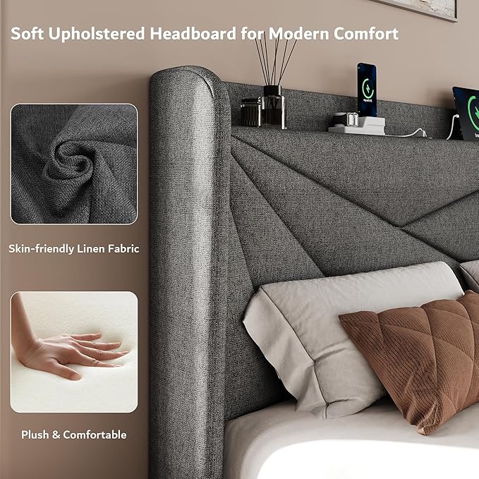 - Special Feature : Noise-Free, Storage Wingback Headboard, Type-C & USB Charging Ports, Upgraded Heavy-Duty Structure Noise-Free, Storage Wingback Headboard, Type-C & USB Charging Ports, Upgraded Heavy-Duty Structure