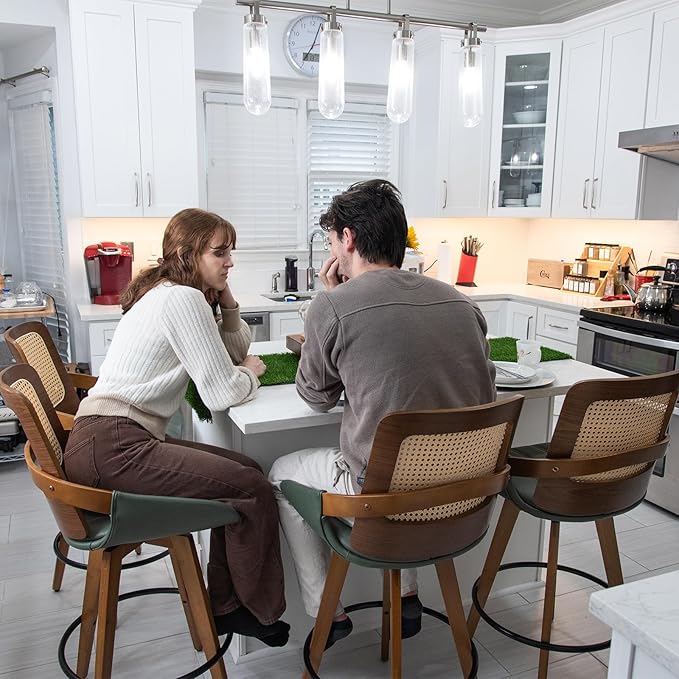 - Sturdy Rattan Backrest for Durability: The sturdy rattan backrest ensures lasting durability; fitting seamlessly into different interiors, these counter height swivel bar stools enhance the overall look of your space, creating a cozy and inviting atmosphere for any environment