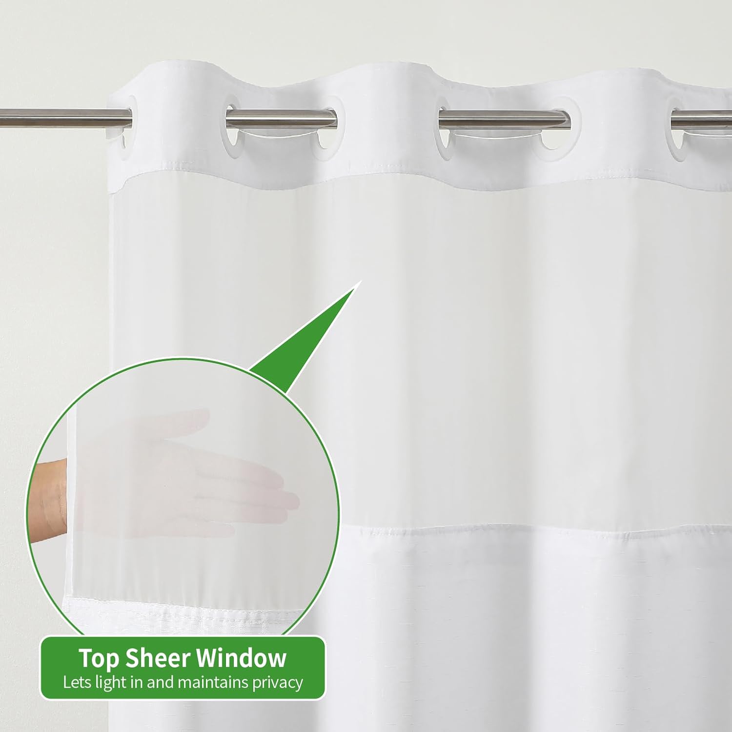 Stall No Hooks Needed White Shower Curtain with Snap-in Fabric Liner Set,Linen Textured Hotel Luxury Decor Shower Curtains for Bathroom with Mesh Top Window,Waterproof & Washable,36Wx74H,