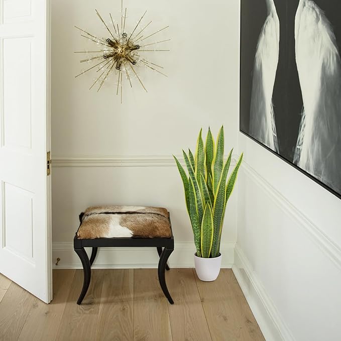 - PREMIUM QUALITY FAKE SNAKE PLANTS: Realistic artificial sansevieria plants are made of polyester material. Each fake snake Plant with pot leaf is thick, upright, solid, has its own elegant arc, gives you a touch like a leathery. "Hollyone" brand assurance is worthy of your trust