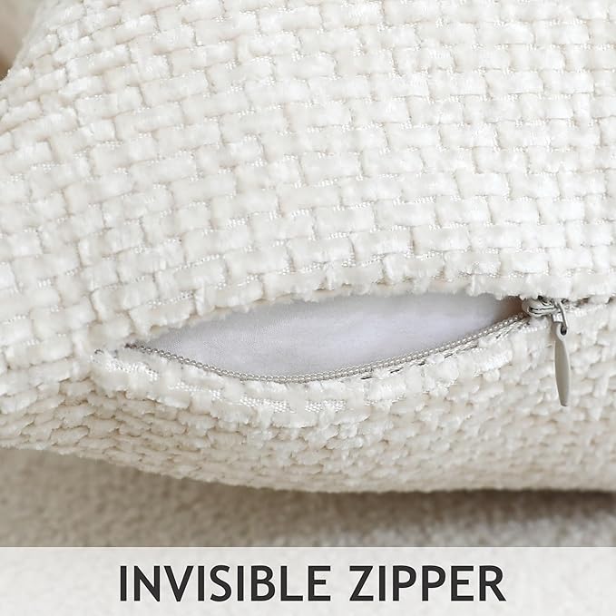 Stellhome Pack of 2 Chenille Neutral Decorative Throw Pillow Covers Soft Woven Textured Luxury Accent Cushion Cases for Living Room Couch Bed Sofa Farmhouse Boho Home, 18x18 inch, Cream