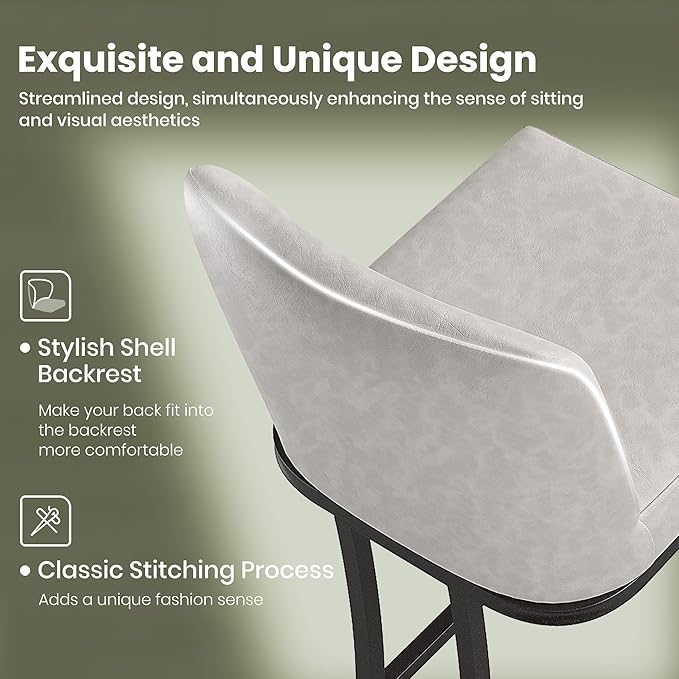- 【Leather Bar Stools】: Crafted with high-quality PU leather, is known for its durability and Animal-friendly. It is resistant to wear and tear, less prone to cracking or peeling compared to genuine leather. The cushions material has a nice pattern and texture to them and are surprisingly rather comfortable to the bum and back. It can be wiped clean with a damp cloth, easy to clean