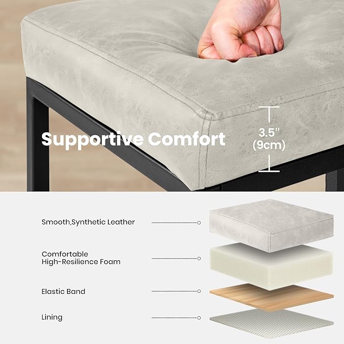 - 【Leather Bar Stools】: Crafted with high-quality PU leather, is known for its durability and Animal-friendly. It is resistant to wear and tear, less prone to cracking or peeling compared to genuine leather. The cushions material has a nice pattern and texture to them and are surprisingly rather comfortable to the bum and back. It can be wiped clean with a damp cloth, easy to clean