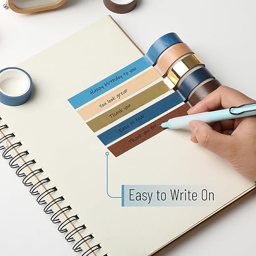 - Featuring a harmonious blend of muted browns, blues, and metallic gold accents, these tapes add depth and elegance to any craft or décor project.