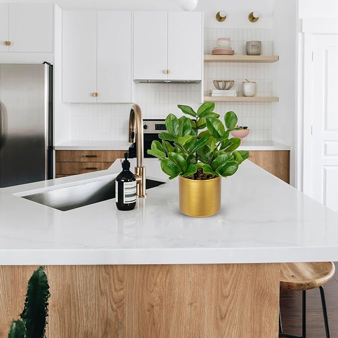 - Perfect Dimensions: This artificial potted plant stands 11.8" tall and has a gold pot size of 5.1" in diameter and 4.7" in height, making it ideal for desktops, shelves, or small spaces.