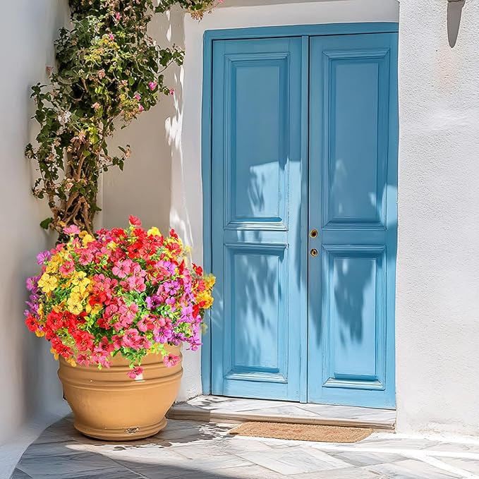 - Lifelike & Eye Catching: These faux outdoor flowers are very realistic.They looks real from a distance.Vibrant blooms allow to create gorgeous flower bouquets and arrangements.Add dopamine to outdoor