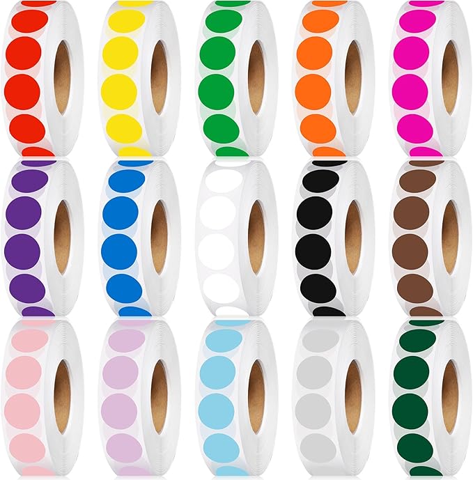 - Abundant Quantity and Color: you will receive 22500 pieces round color coding labels of 15 diverse colors, 1000 stickers of each color; Sufficient quantity and multiple colors can meet your daily needs, bringing more convenience to your work, study or your daily life