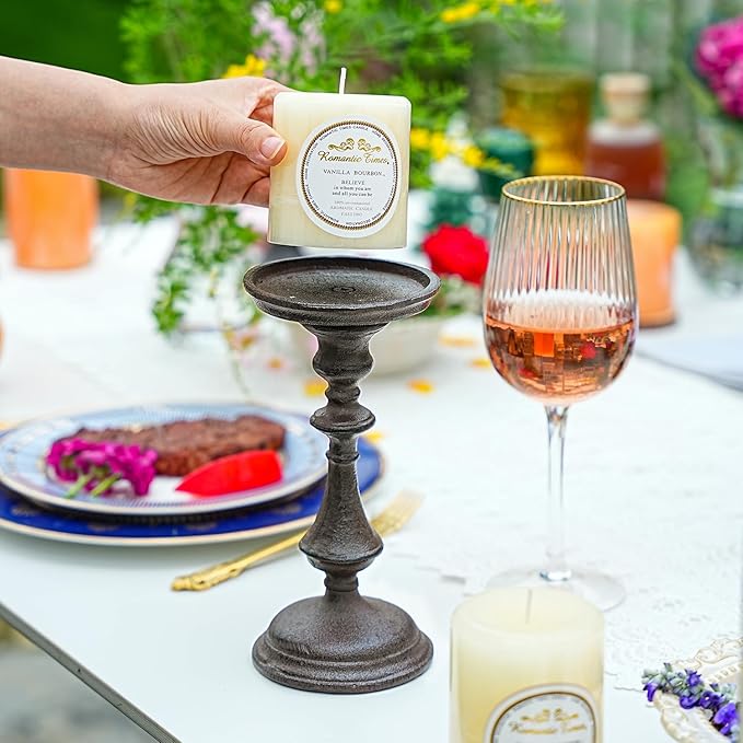 Sungmor Rustic Cast Iron Pillar Candle Holder, 7.8" Tall Vintage Candlestick Holders, Table Centerpiece Metal Candle Holder, Farmhouse Candle Stand for Fireplace Shelf Home Decor