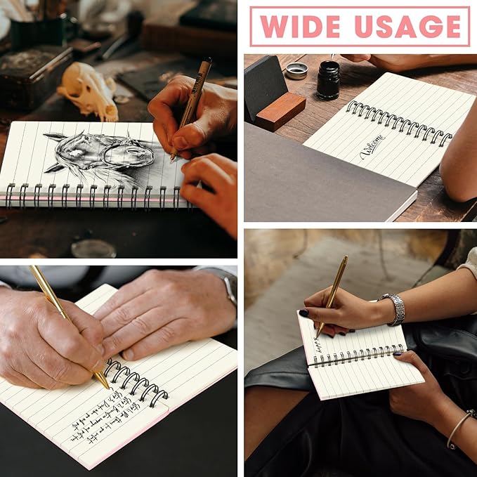 - Widely Applicable: These small spiral notepads perfect for business, conference, travelers notebooks, composition, schoolwork, for keeping a travelogue, a daily journal, planning, note-taking and anything important,and you can also use them for creative scrapbooking or handwriting books to inspire your creativity and imagination