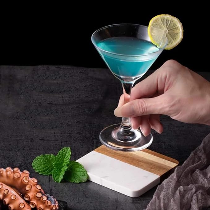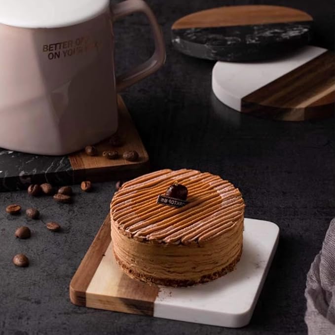 - UNIQUE & HIGH QUALITY COASTER: they are acacia wood with marble drink coasters.Each marble and acacia are natural material with their own textures and colors,accordingly each marble and acacia caosters are unique,they are slight variations.