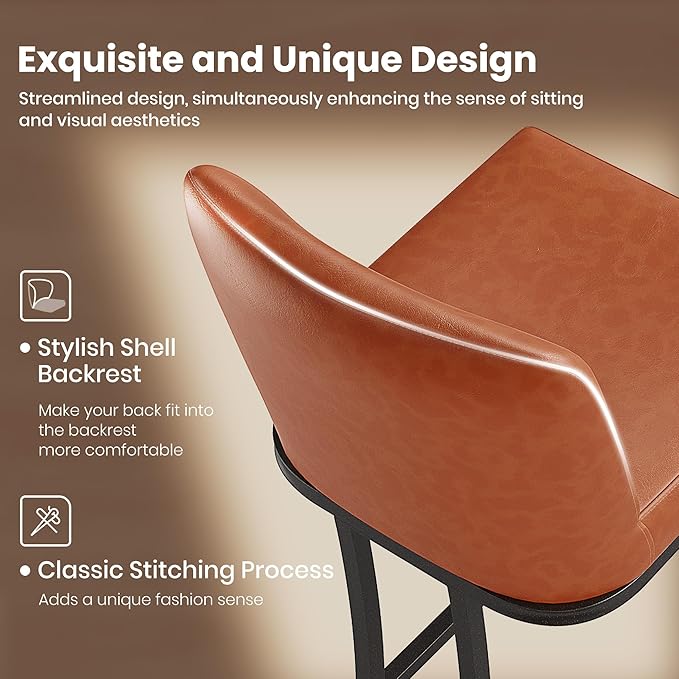 - 【Leather Bar Stools】: Crafted with high-quality PU leather, is known for its durability and Animal-friendly. It is resistant to wear and tear, less prone to cracking or peeling compared to genuine leather. The cushions material has a nice pattern and texture to them and are surprisingly rather comfortable to the bum and back. It can be wiped clean with a damp cloth, easy to clean