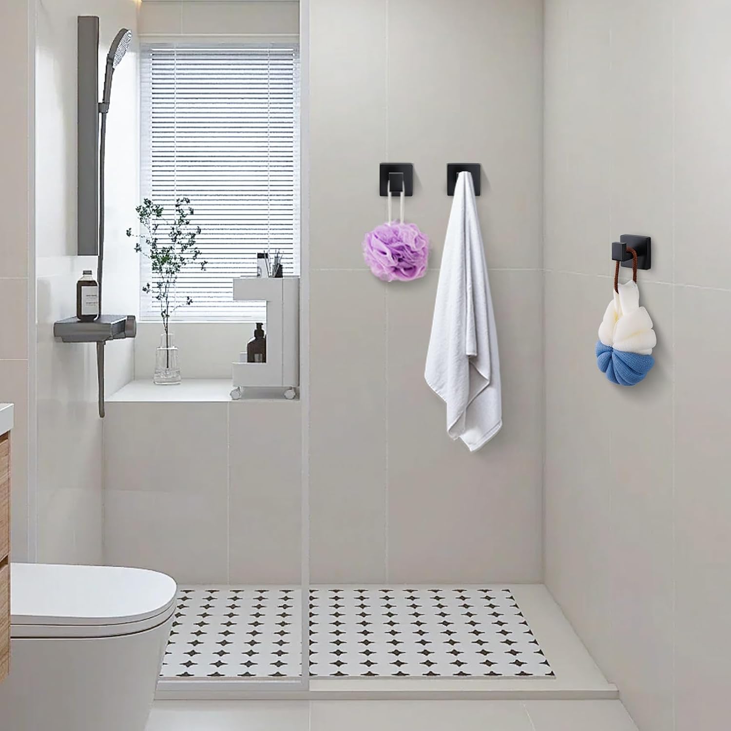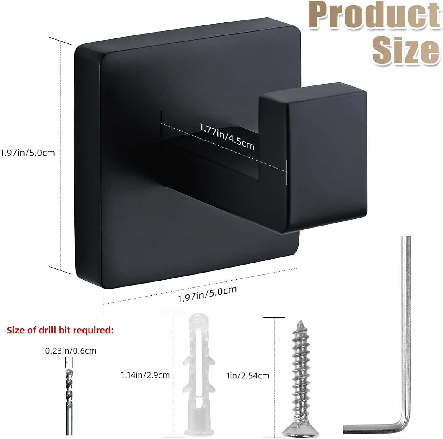Towel Hooks for Bathrooms Robe Hook Coat Hook 4 Pack Matte Black Stainless Steel Heavy Duty Wall Mounted Square Hooks for Bathroom Kitchen Bedroom