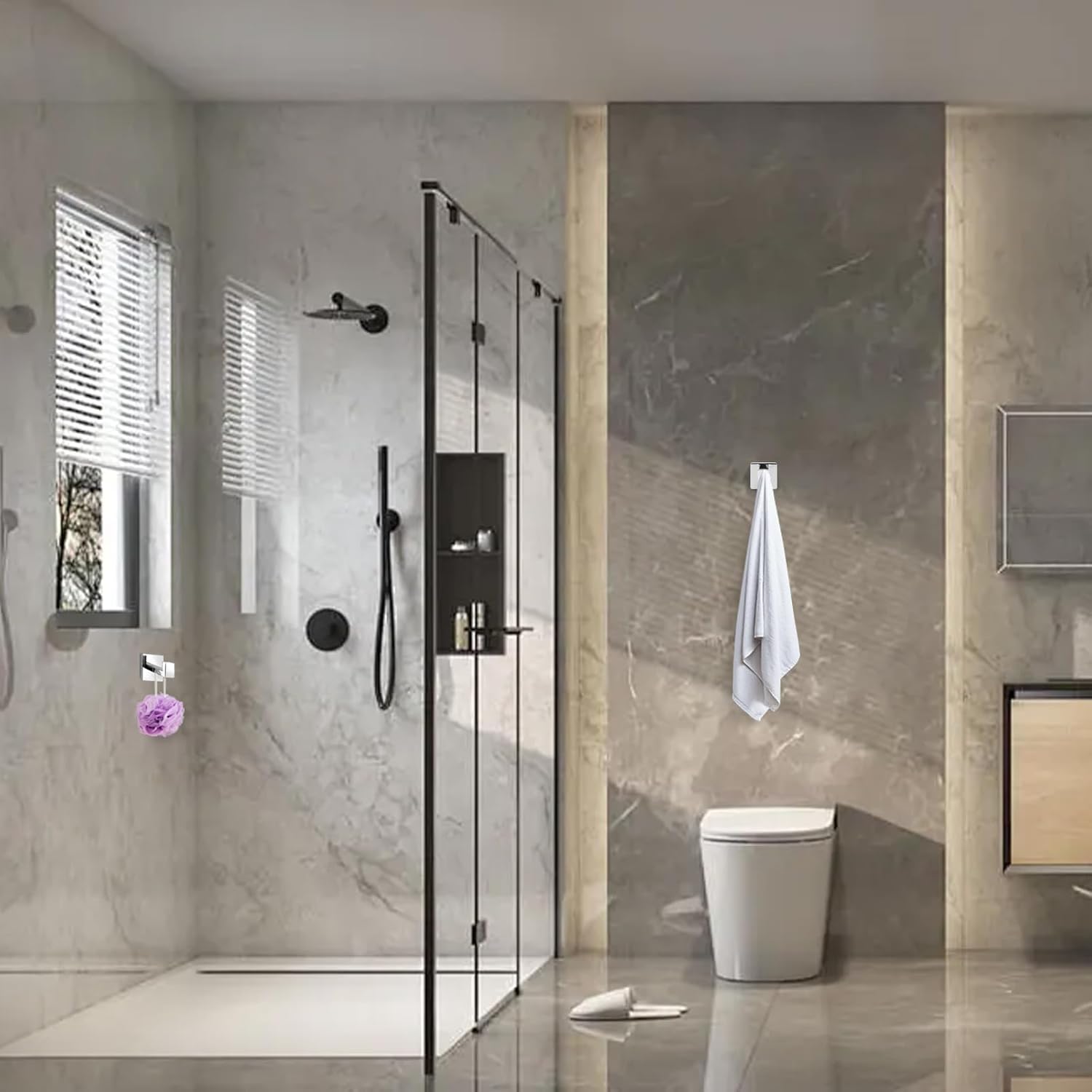 Towel Hooks for Bathrooms Robe Hook Coat Hook 4 Pack Polished Chrome Stainless Steel Heavy Duty Wall Mounted Square Hooks for Bathroom Kitchen Bedroom