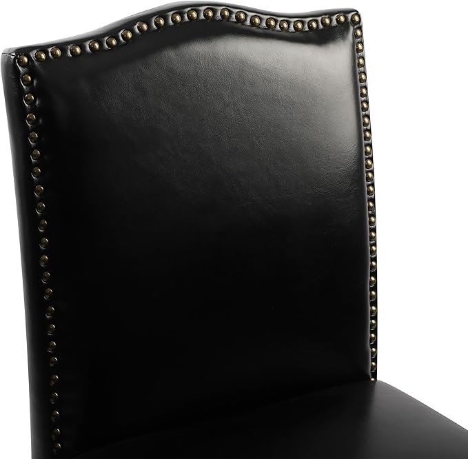 LSSPAID Counter Height Bar Stools Set of 4, 23.5 Inch Pu Upholstered Barstools, Kitchen Island Chairs with Bronze Nail Backrest and Solid Wood Legs for Kitchen Pub Home Cafe, Black