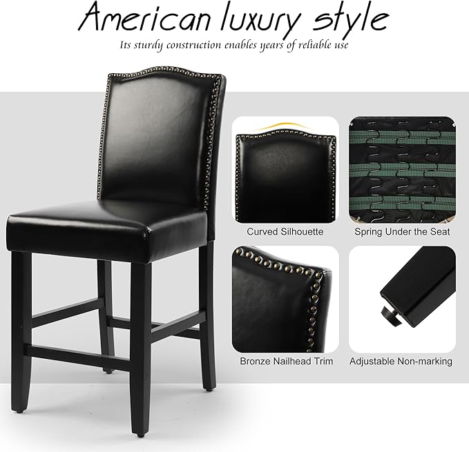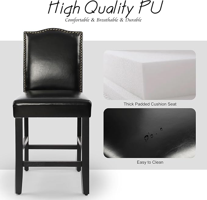 - Easy to Clean: The top of the seat is covered with wear-resistant and breathable PU leather, which is easy to clean and very comfortable to sit on. Counter height chairs PU material can also prolong the use time