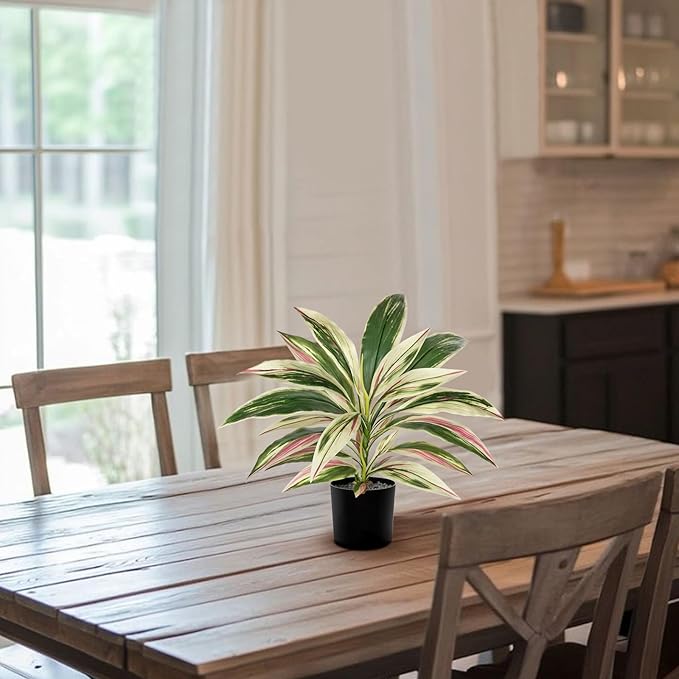 - Realistic Look Artificial Plants - They are designed to close to the real dracaena plant, boasting 3 lifelike stems that covered with lush leaves, full of different layers and textures, the leaves has green, pink and white color variegation playfully alternate for a realistic look and feel, this vibrant silk plant will evoke instant freshness wherever displayed andgive you a tropical feel
