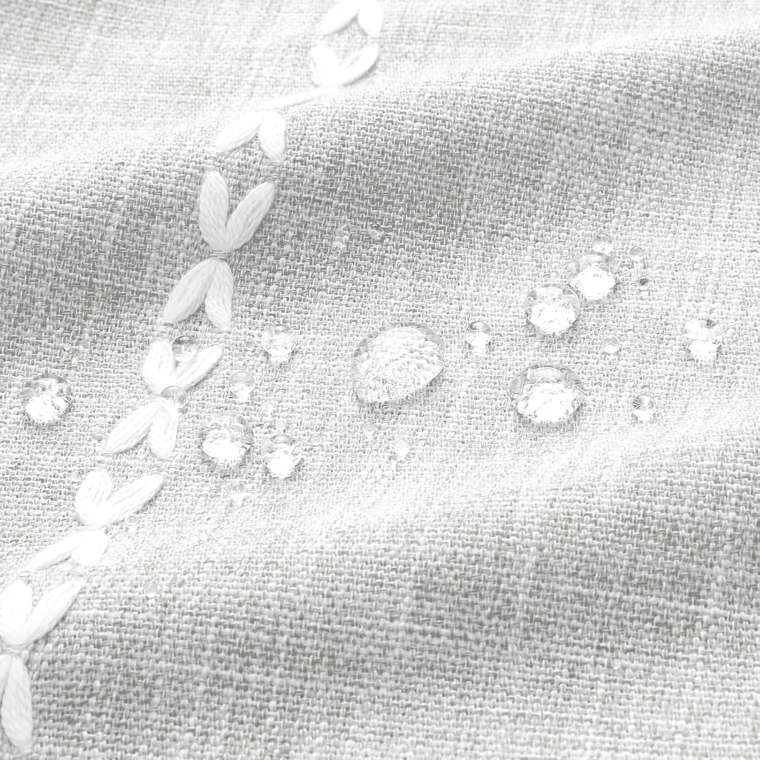 - Wrinkle Free & Ultra Thick Fabric - 310 GSM, 15% linen, 85% polyester creates farmhouse like effect for this light grey shower curtain, so that it could keep in place. The quality curtain is elegant and soft, which can deliver a country-like bathroom environment.