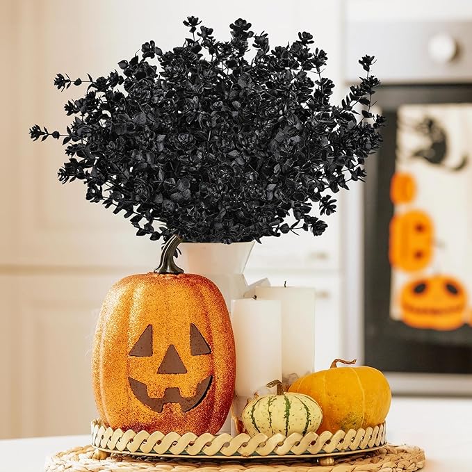 AmyHomie 20 Bundles Black Eucalyptus Artificial Flowers for Outdoor UV Resistant Faux Flowers No Fade Fake Plastic Plants Garden Porch Window Box Decorating