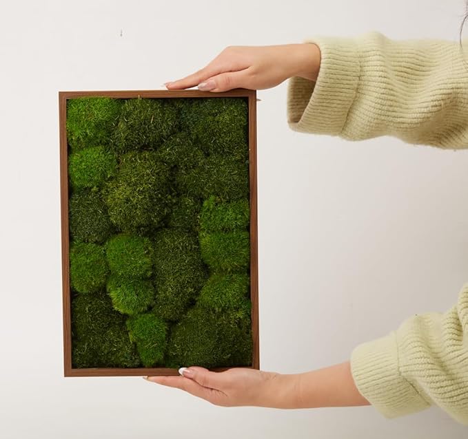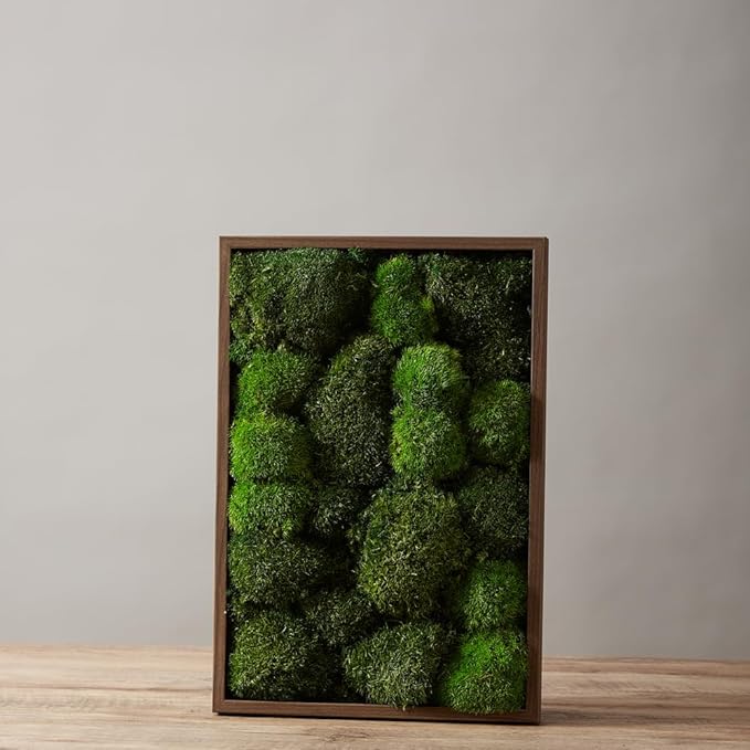 - Real moss and ferns, harvested from forest, are preserved using non-toxic food-grade ingredients. Since they are preserved, the moss do not wilt, do not require water, nor do they put out pollen or spores. The result is an ever-green artwork -- a "plant painting" -- that looks stunning and requires no maintenance whatsoever.