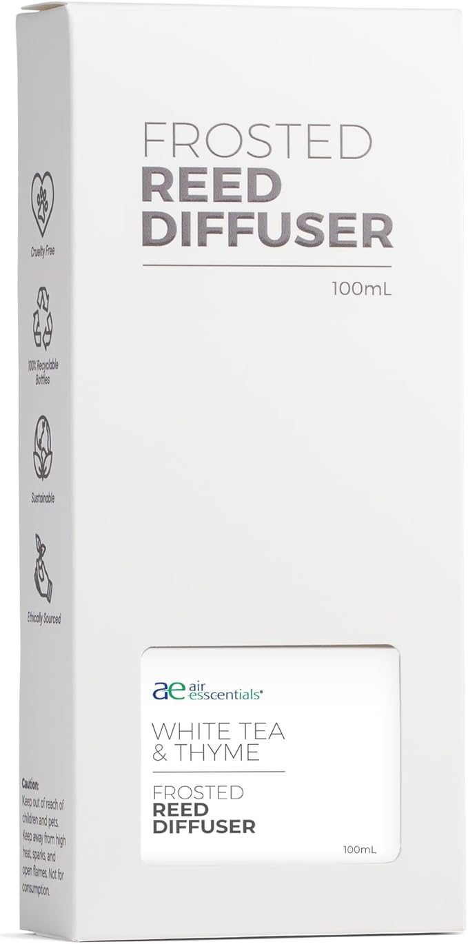 Frosted White Tea & Thyme Reed Diffuser Set - Decorative Fragrance Diffuser & Oil for Bathroom & Home | Long-Lasting Aroma | Natural Scent Sticks | Essential Oils & Botanicals| 100mL